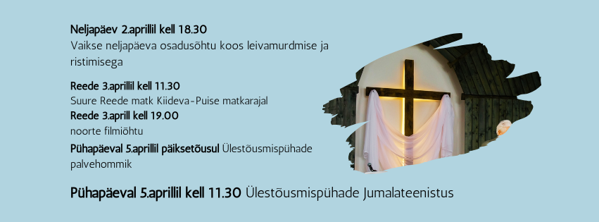 5.04 päikesetõusul Ülestõusmispühade palvehommik ja kl 11.30 Ülestõusmispühade jumalateenistus